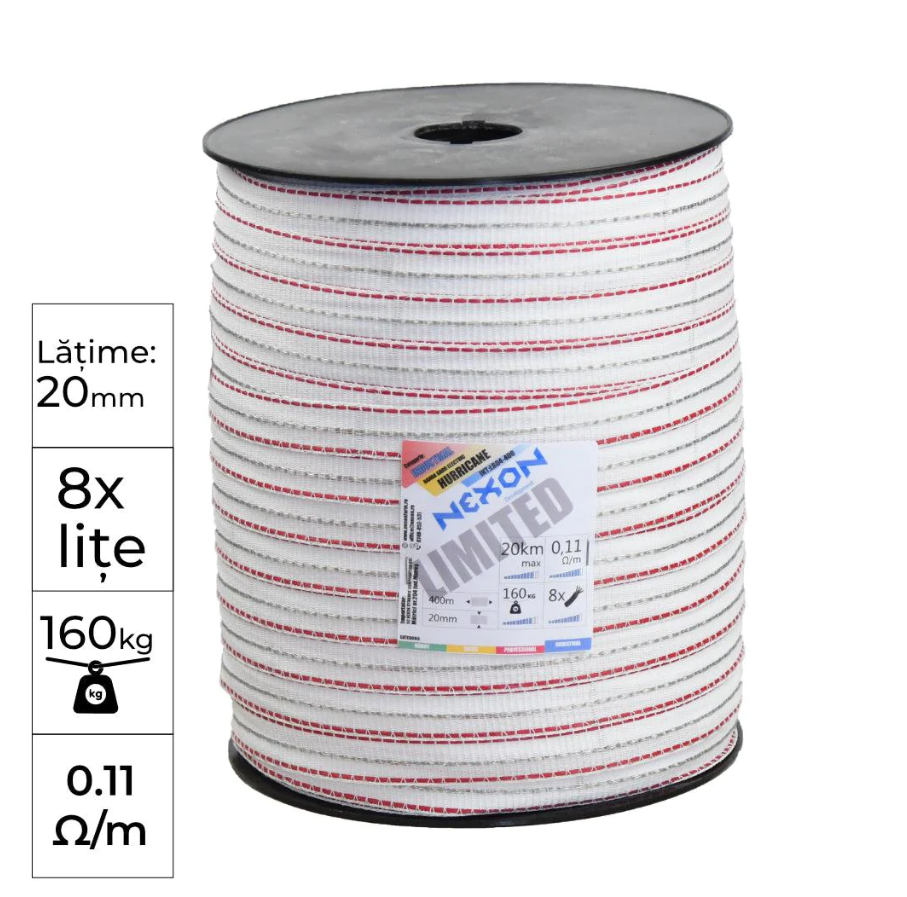 400 metri de banda pentru gard electric de foarte buna calitate, foarte masiv si gros. Recomandat si pentru terenuri agrabatice, pentru animale salbatice si domestice.