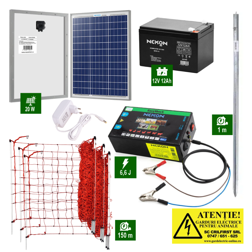 Pachet Gard electric 6,6J putere cu 150m de plasă plus Panou solar și acumulator
