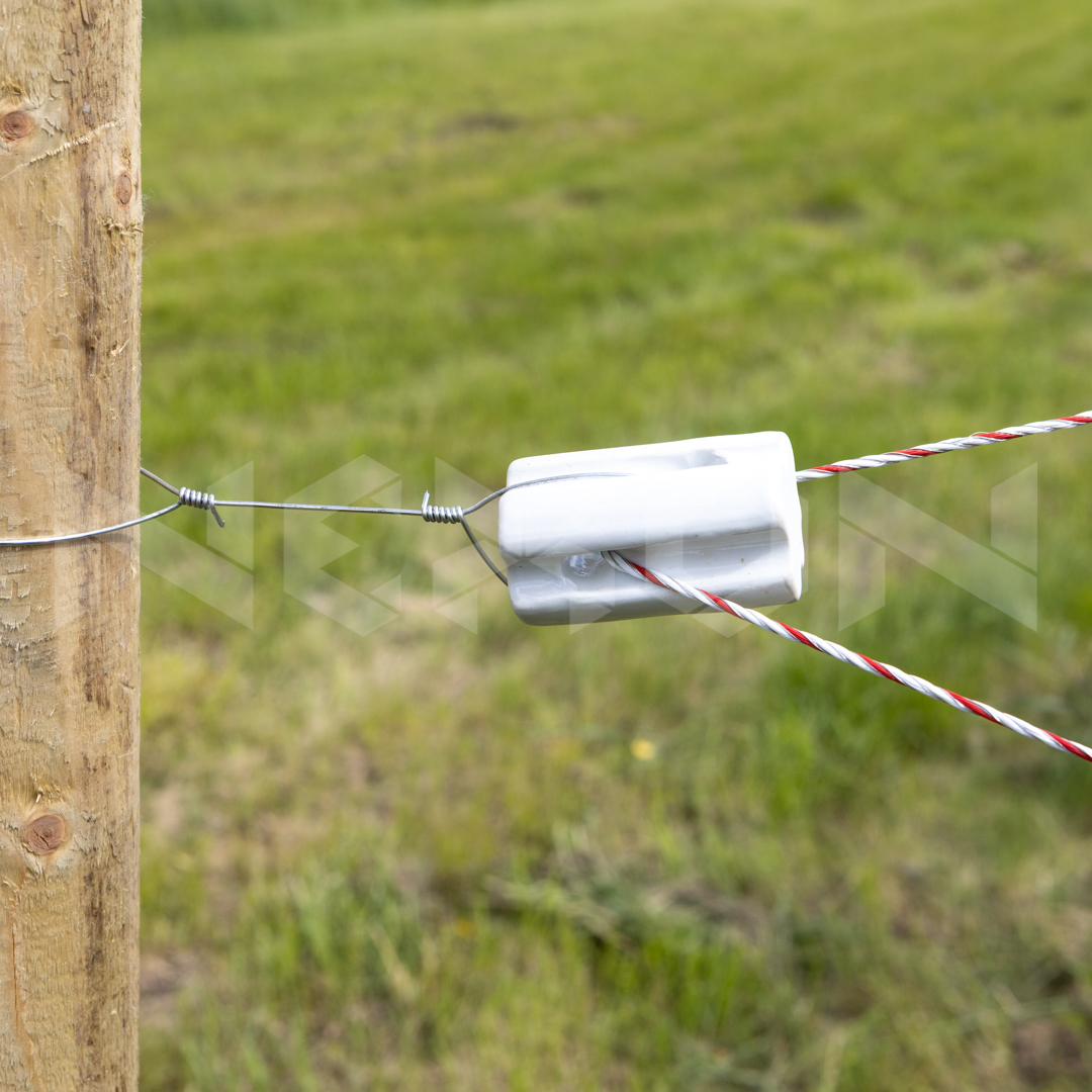 Izolator premium din porțelan alb, conceput pentru zonele de început, capăt sau tensionare ale gardurilor electrice. Asigură izolare excelentă împotriva pierderilor de curent, rezistență ridicată la tracțiune și durabilitate, chiar și în condiții meteo extreme.