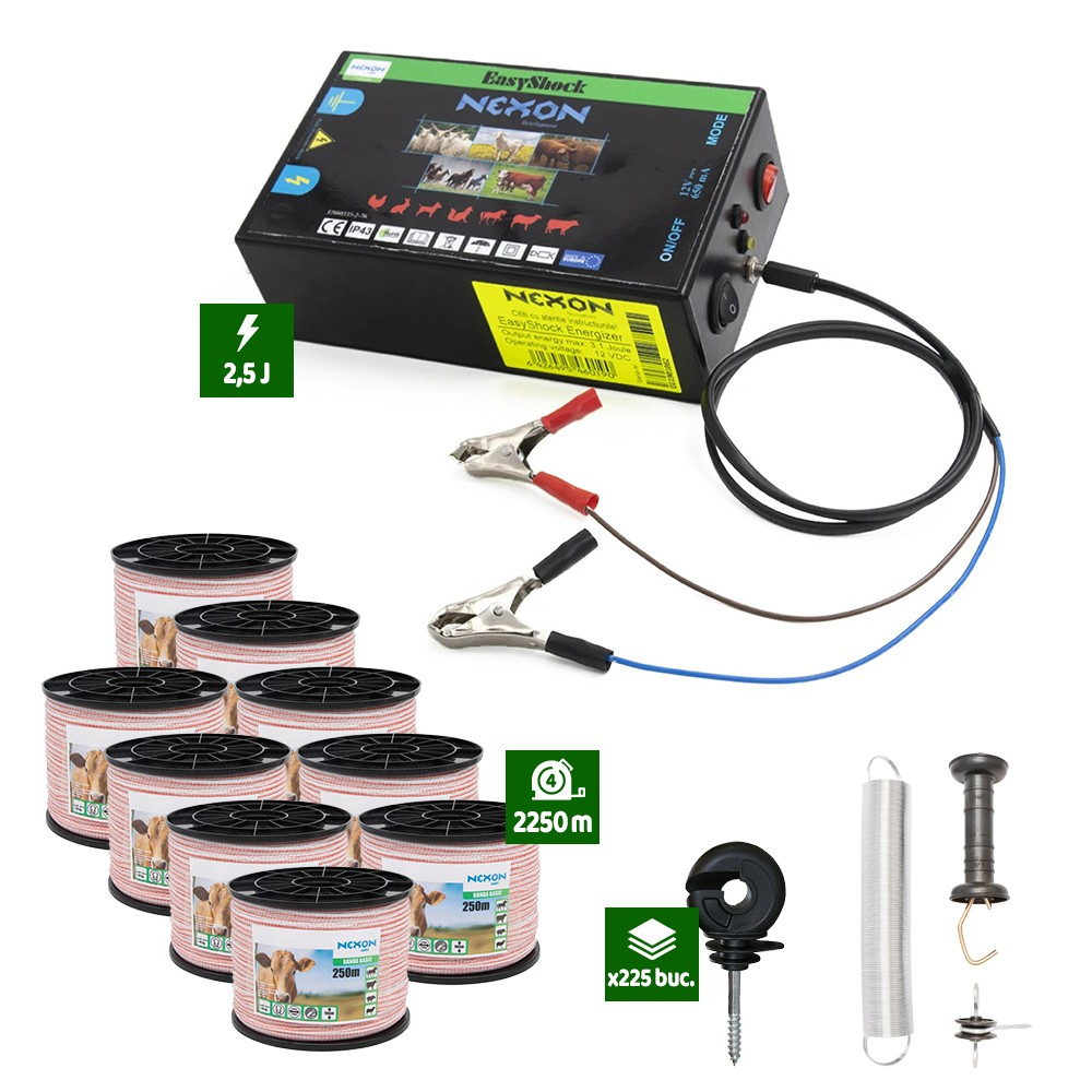 - Un pulsator electric de 2,5J putere (cu Buton de oprire/pornire și Buton reglaj tensiune + 2 LED-uri indicator stare baterie și starea Gardului)