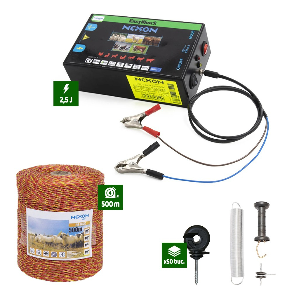 - Un pulsator electric de 2,5J putere (cu Buton de oprire/pornire și Buton reglaj tensiune + 2 LED-uri indicator stare baterie și starea Gardului)