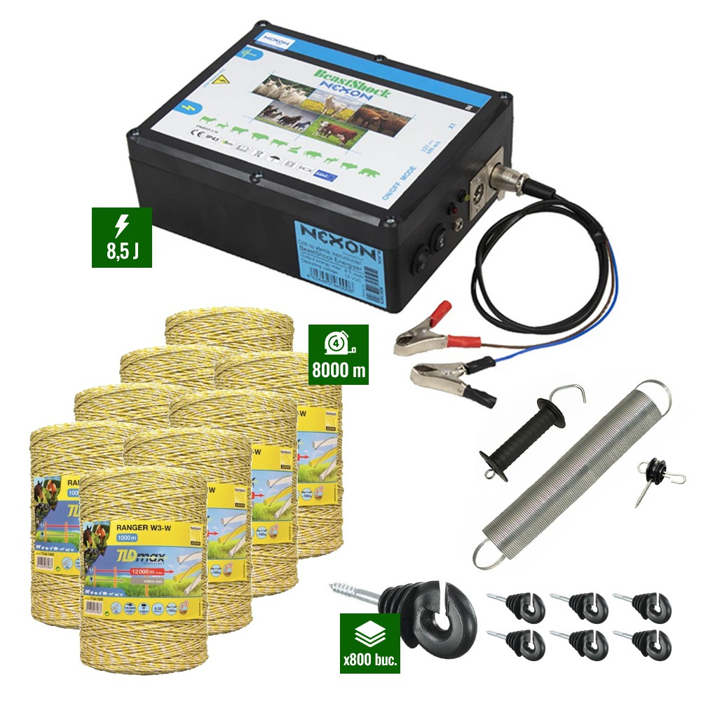 - Un pulsator electric de 8,5J putere (cu un Buton de oprire/pornire plus 1 buton pentru reglarea puterii și 2 LED-uri indicator)