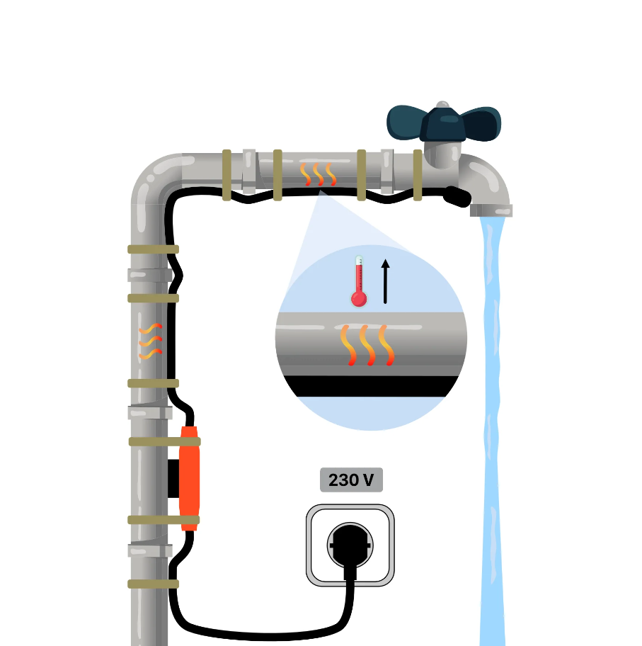 Instalarea este foarte simplă – cablul trebuie doar înfășurat sau prins cu coliere de plastic în jurul țevii. Nu sunt necesare unelte speciale, iar acest lucru permite protejarea rapidă a instalației de apă împotriva riscului de îngheț. Cablul este compatibil cu o gamă largă de dimensiuni și tipuri de țevi, oferind flexibilitate în utilizare.