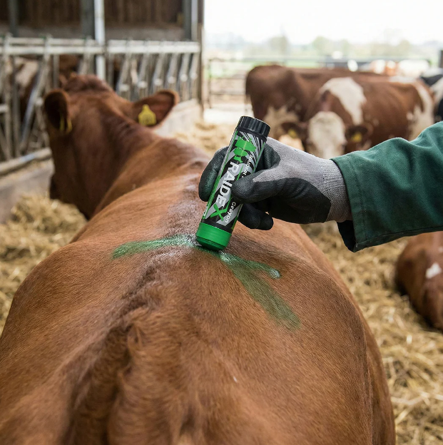 Datorită formulei cu putere mare de acoperire și sistemului practic de rotire, creionul permite o aplicare ușoară, curată și precisă, fiind ideal pentru marcaje temporare în ferme și exploatații zootehnice.